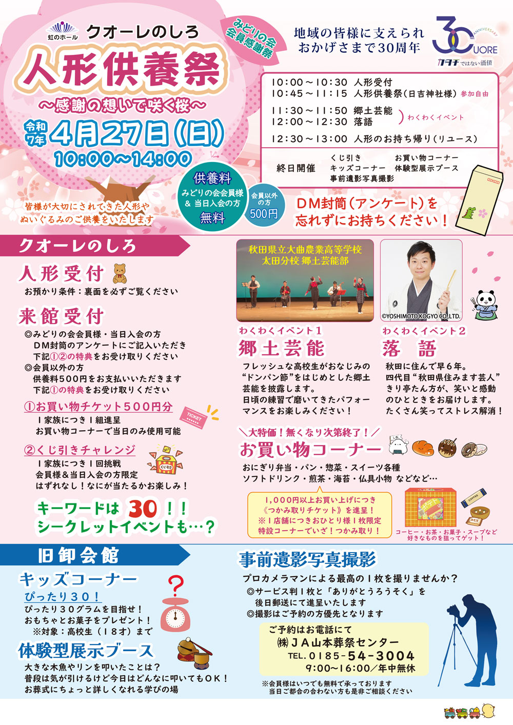 皆様が大切にされてきた人形やぬいぐるみを丁寧にご供養いたします。また併せて、様々なお楽しみ企画もご用意いたします。お近くで開催の際は是非お越しくださいますようご案内申し上げます。