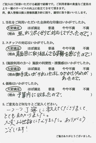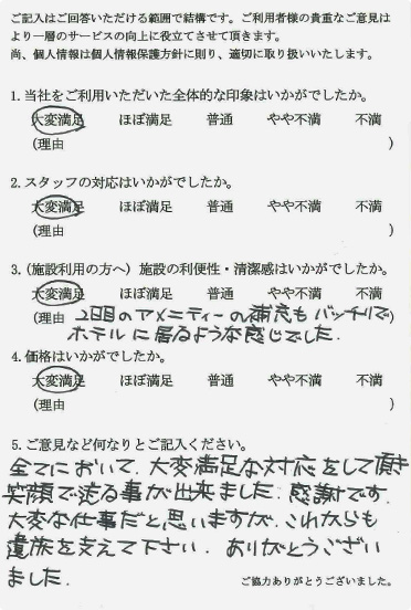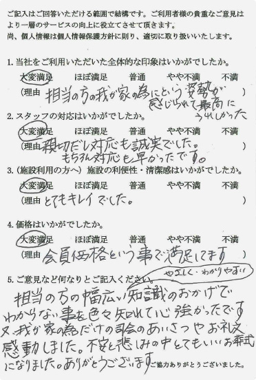 ご葬儀を終えられたお客様からいただいた、アンケート回答をご紹介いたします。